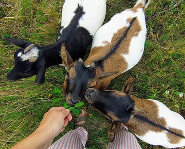 Enjoy playful moments with our friendly goats at the farm's grounds.
