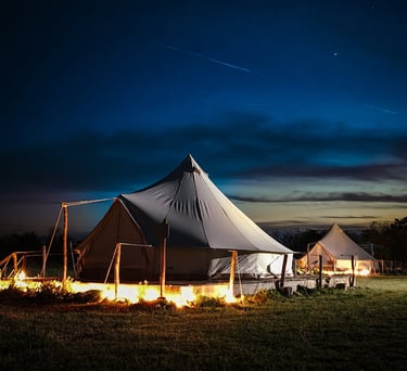 Glamping tents for up to 4 guests. Ideal for family adventures or team missions with friends.
